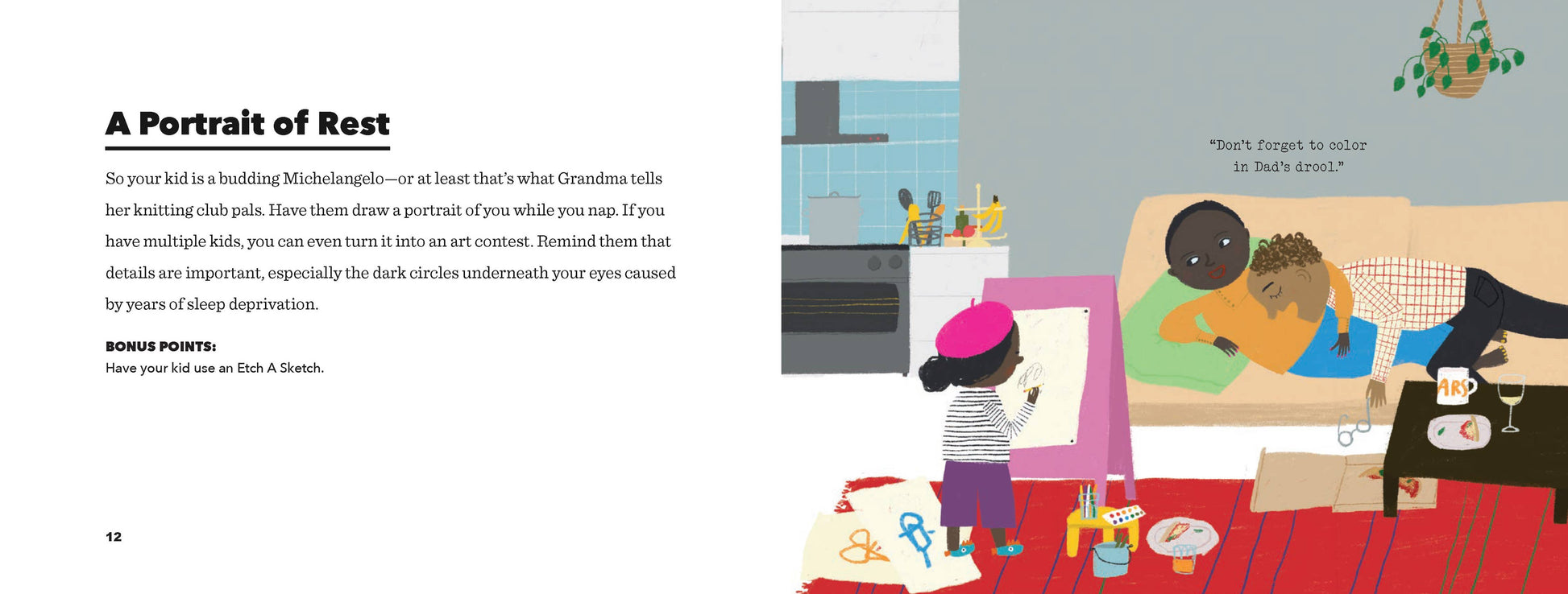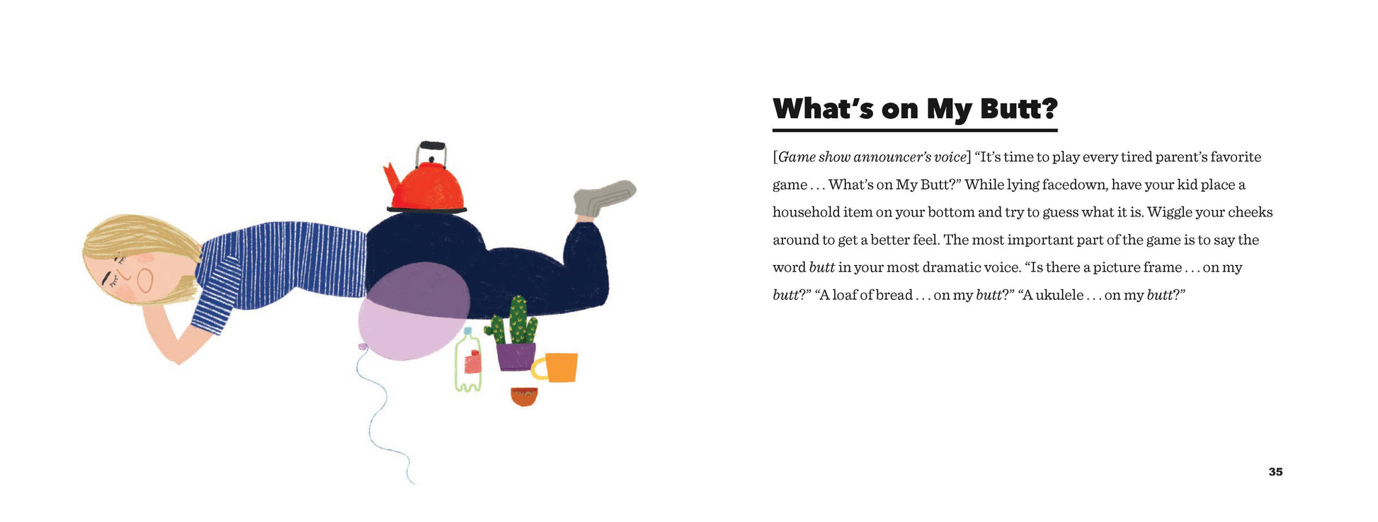 Children are exhausting! In the marathon of modern parenting, everyone needs a break - just 10 precious minutes to rest your body and tune out the chaos. Enter: HORIZONTAL PARENTING, the super-simple parenting hack for everyone, everywhere. With creative and practical advice for overworked parents, grandparents, aunts, uncles, and caretakers who "just need a minute," this book includes 50 fun, effective, and hilarious games to play with your children while lying down. Activities range from "M Is for Massage" to "Hide and Seek-ish" to "What's on My Butt?" - giving children a chance to release some energy while you catch your breath (and maybe a few even a few z's). All you need is a comfortable surface, a few household items, and your child's imagination, and you too can master the sanity-saving art of horizontal parenting.