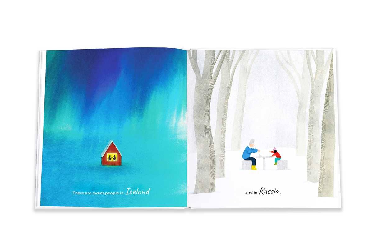 Sweet People Are Everywhere, an illustrated picture book featuring a poem by internationally renowned writer and activist Alice Walker, is a powerful celebration of humanity. The poem addresses a young boy getting his first passport, taking the boy––and the reader––on a journey through a series of countries around the globe where “sweet people” can be found. Walker’s heartening message is celebrated through Quim Torres’ deeply felt illustrations.