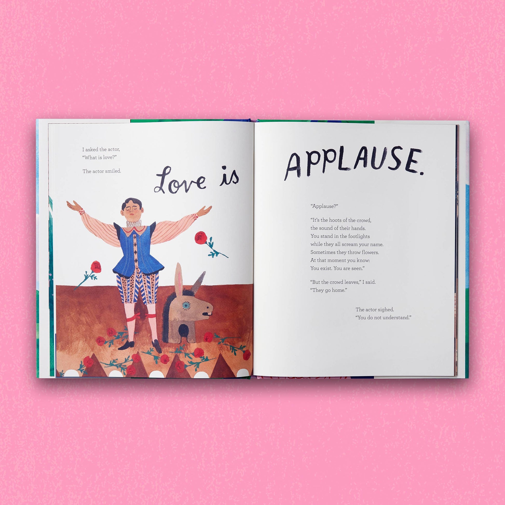 “What is love?” a young boy asks. “I can’t answer that,” his grandmother says, and so the boy goes out into the world to find out. But while each person he meets—the fisherman, the actor, and others—has an answer to his question, not one seems quite right. Could love really be a fish, or applause, or the night? Or could it actually be something much closer to home?